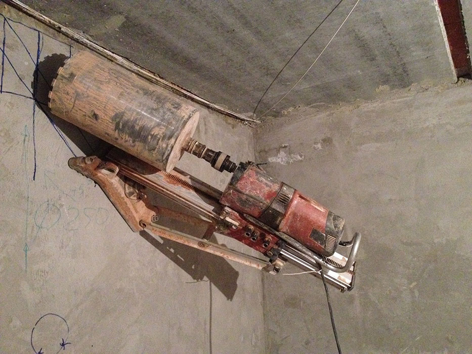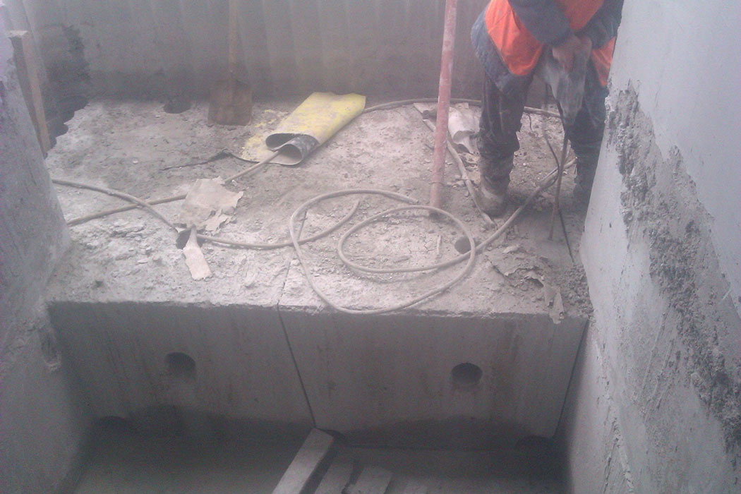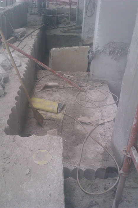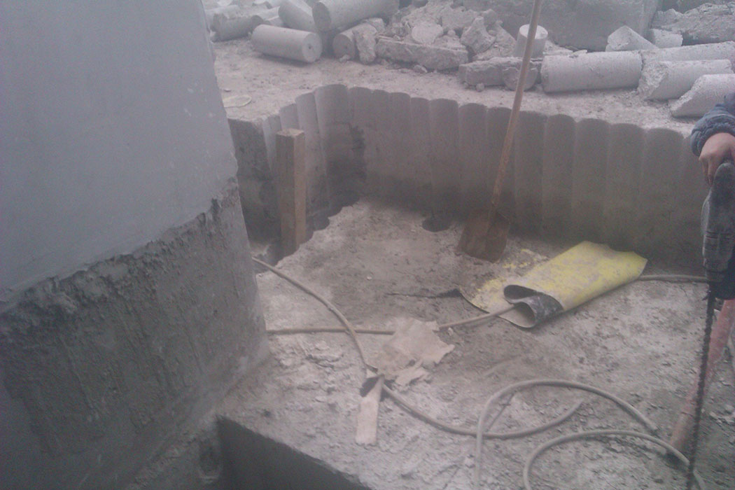 Демонтаж бетона в лифтовой шахте, методом отбуривания и канатной резкой.